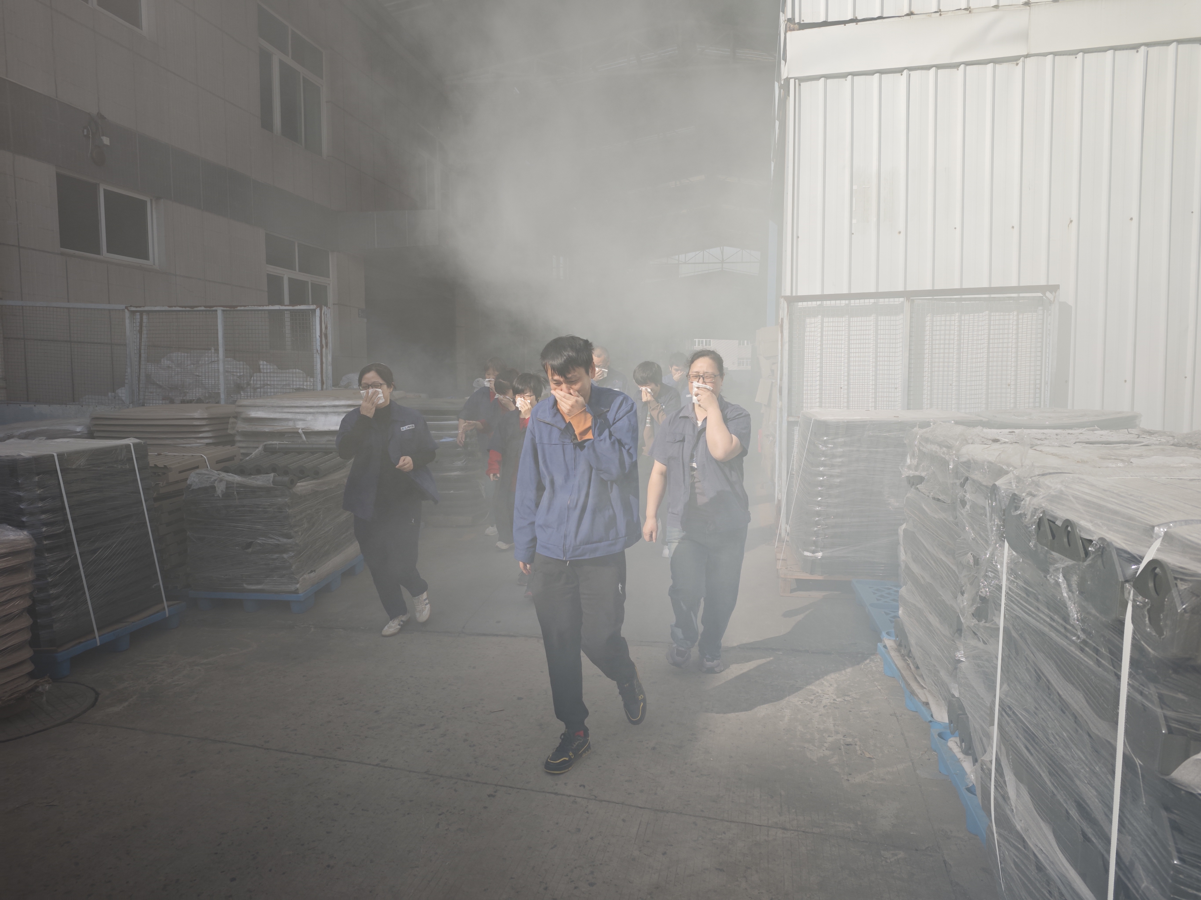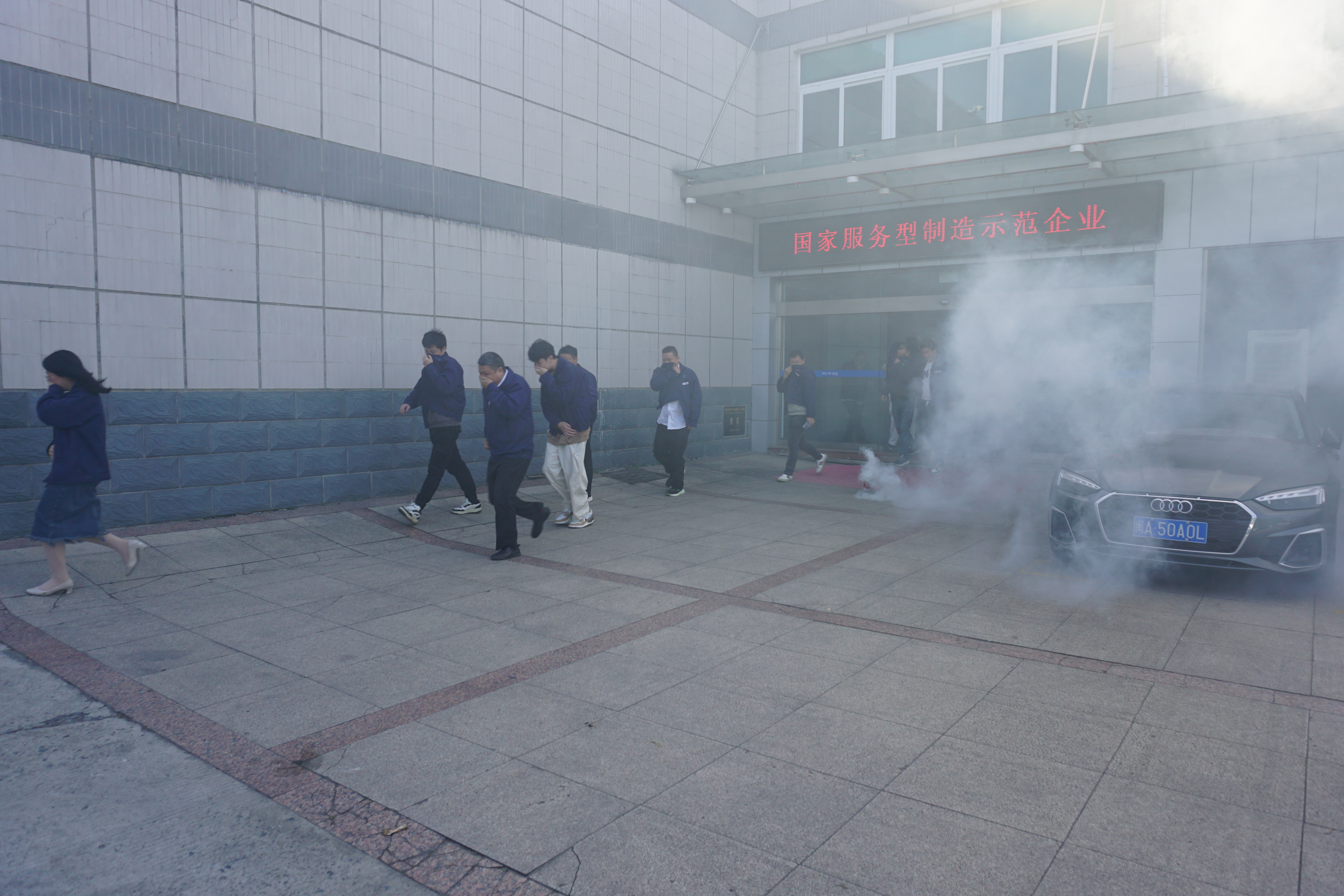 上午9点整,厂区突然响起尖锐的消防警铃,同时安全员在通道内点燃烟雾弹,模拟火情蔓延场景。听到警铃后,员工立即放下手中工作,按照应急预案的指引,低头弯腰、捂住口鼻,沿着指定疏散通道快速有序撤离。整个疏散过程快速,所有参演人员安全抵达指定集合点,列队清点人数,无一人遗漏。演练中,员工们严格遵守“听从指挥、态度严肃、动作迅速”的要求,展现了良好的应急素养。