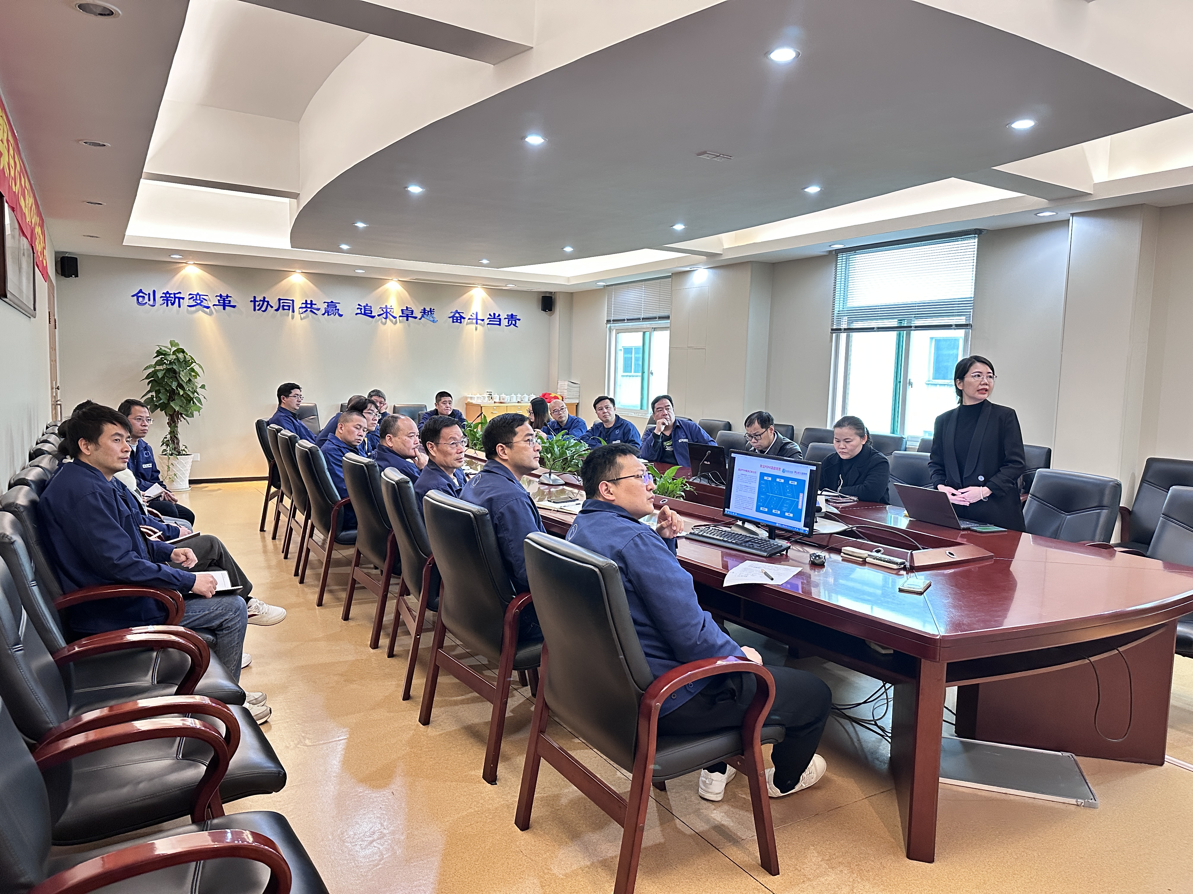 本次会议由澳蓝信息部经理薛章鸿主持。会议伊始,黄华铃董事长发表致辞,他从企业长期发展战略高度强调了PDM系统建设的重要意义,要求各部门负责人高度重视项目落地工作,秉持开放学习、协同共进的心态,以“提效率、强质量、促创新”为核心目标推进各项建设工作。黄董表示,PDM系统是澳蓝研发能力升级的核心支撑工具,希望全体成员凝聚共识、形成合力,在项目推进过程中主动适应新模式、拥抱新变化,共同打造适配澳蓝发展需求的数字化研发管理体系。