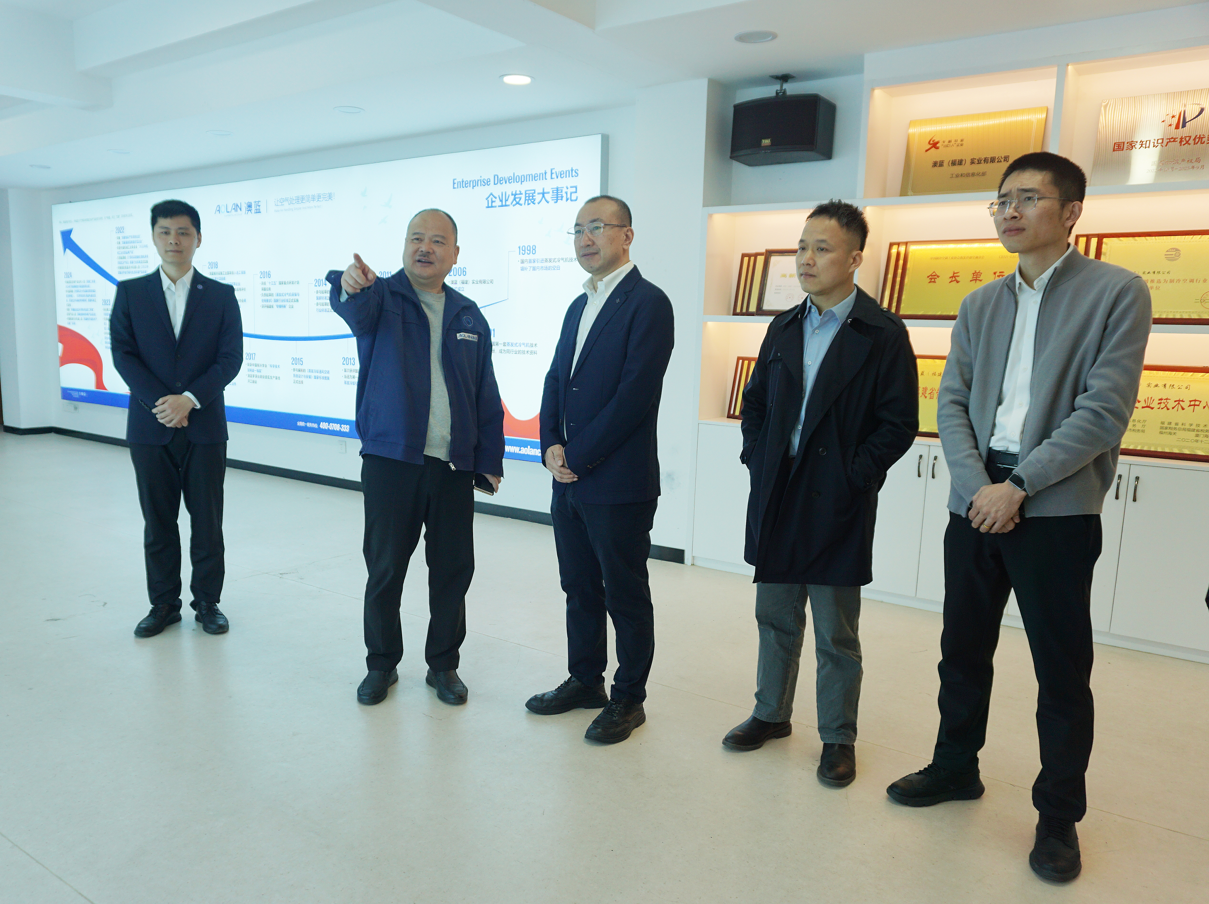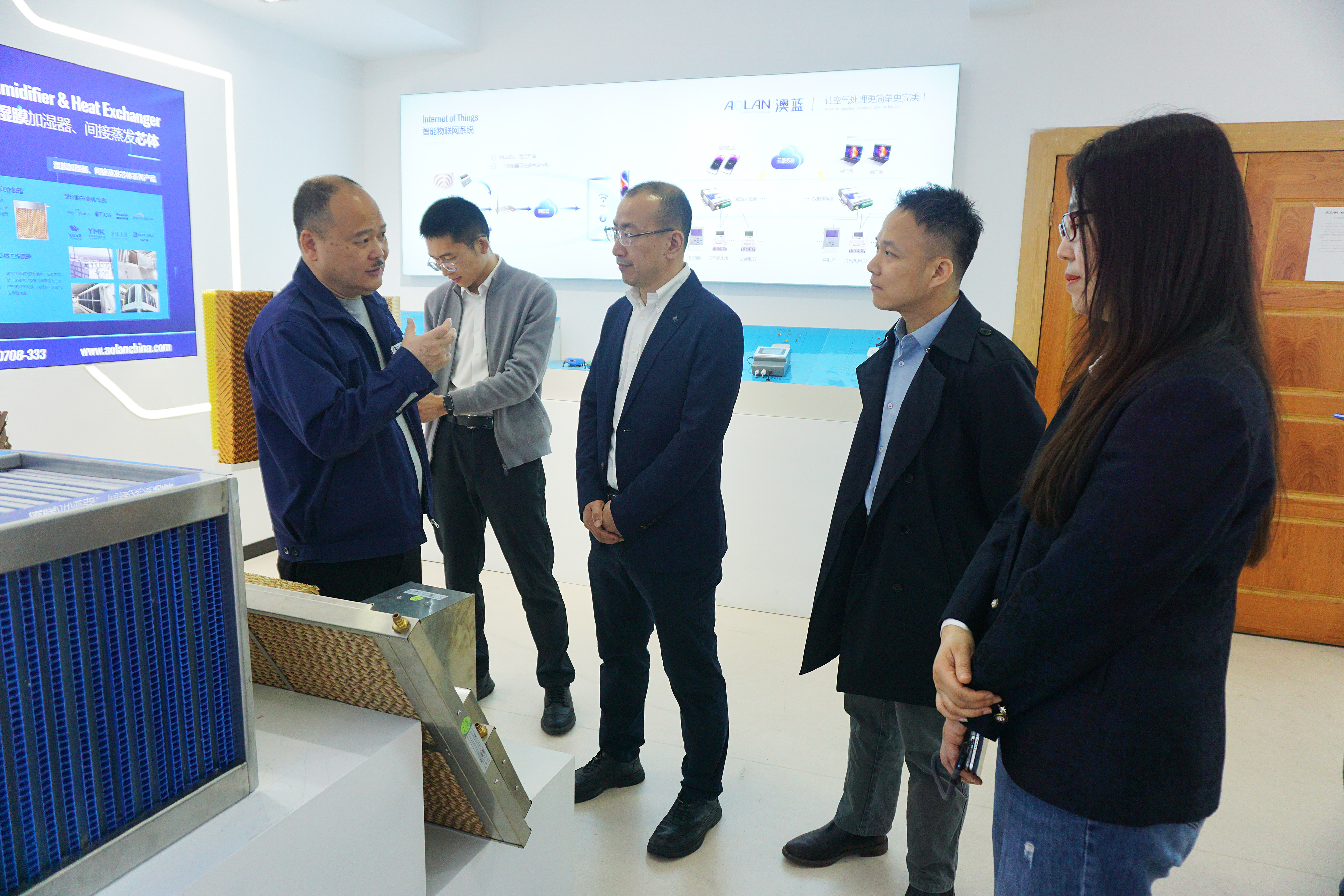签约仪式前,王正刚副总裁一行首先参观了澳蓝企业展厅,详细了解澳蓝的发展历程、全品类产品矩阵、国内外市场布局以及前沿技术研发成果,并参观了澳蓝研发实验室与智能物联网监控平台,对澳蓝多年来在节能科技领域的技术沉淀和落地成果给予了高度评价。