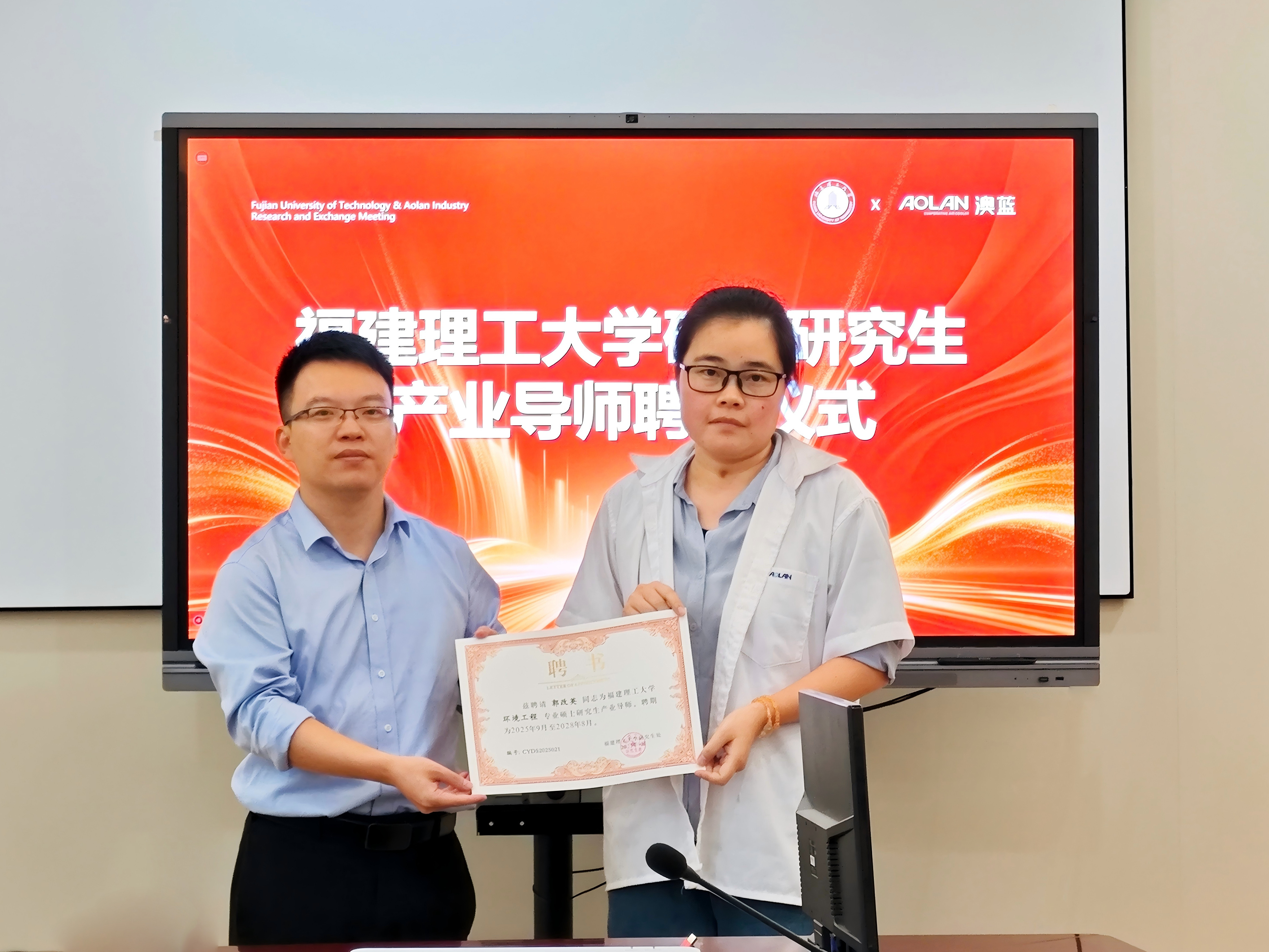 澳蓝与福建理工大学产学研合作关系渊源深厚,2016年即与福建理工学院开启合作探索,2024年升格为福建理工大学后再次签署校企合作协议,而此次交流及聘任活动进一步夯实了双方合作基础,进入“人才共育、项目共研”的新阶段。